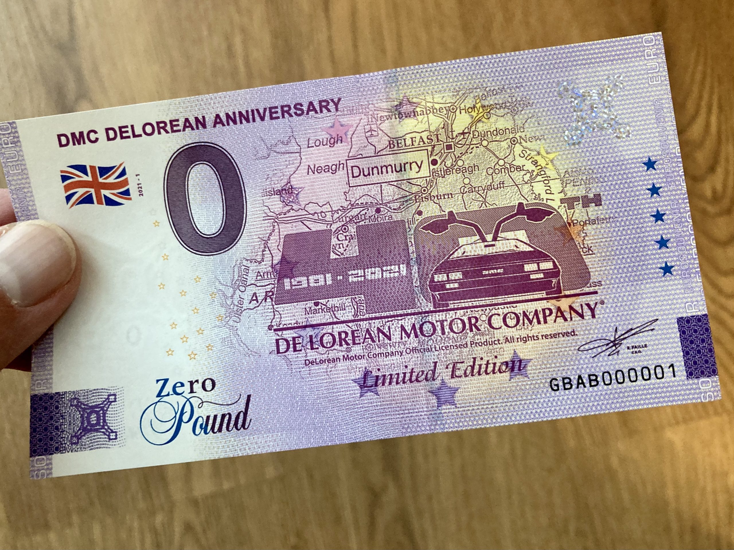 DeLorean 40th Anniversary £0 Souvenir Notes