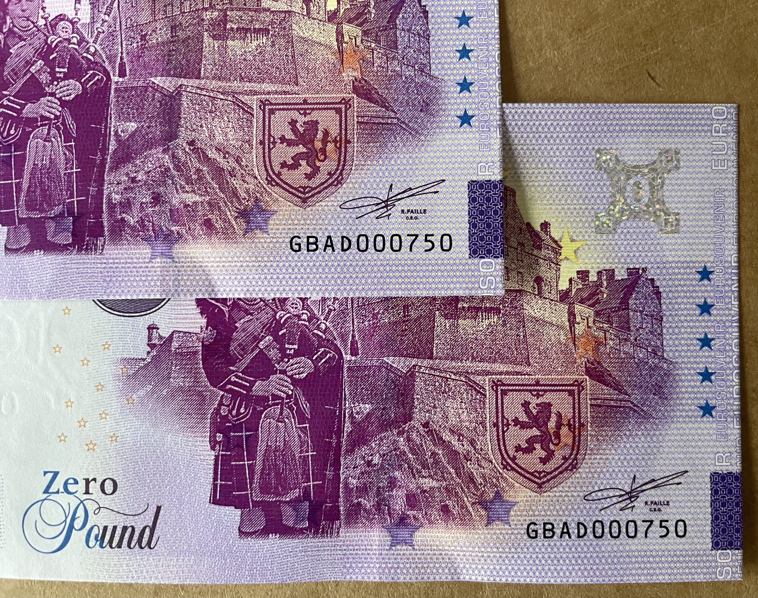 For some reason 2 Scotland Edinburgh Castle £0 Notes n°000375 were issued,