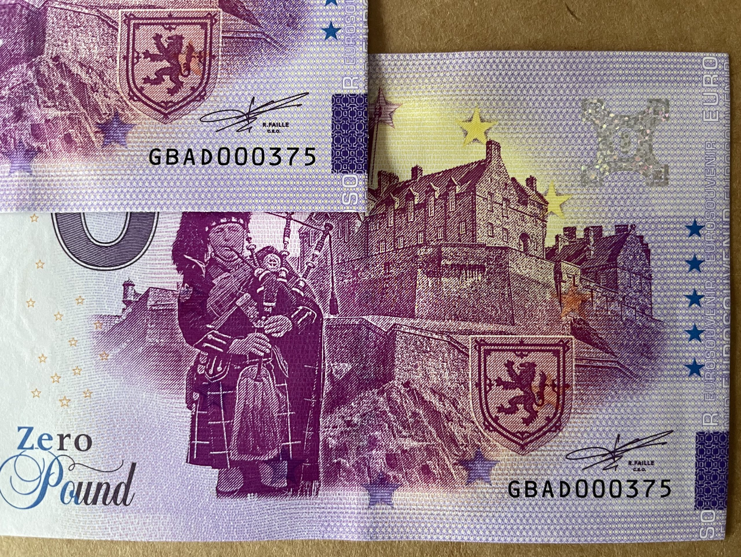 For some reason 2 Scotland Edinburgh Castle £0 Notes n°000750 were issued,